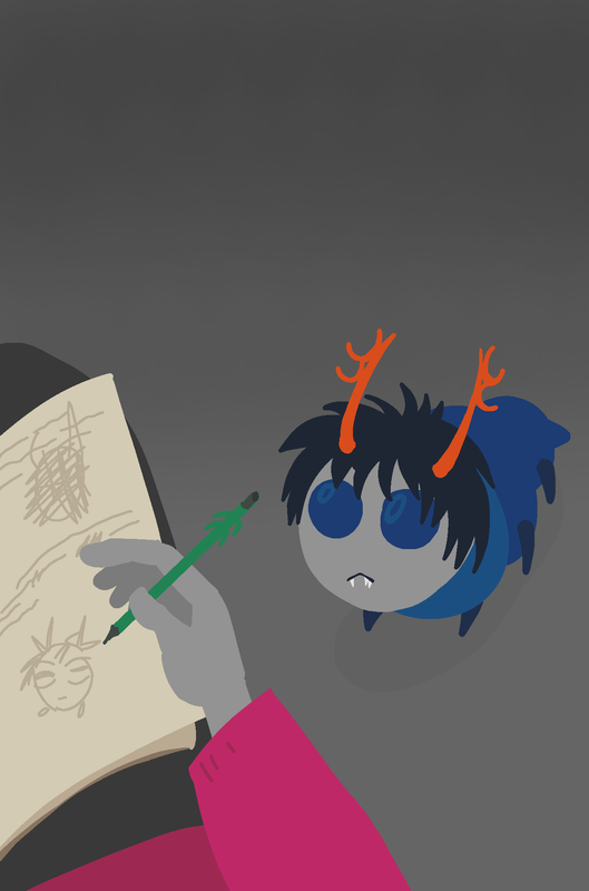 > "I am Xou, Xou art I..." < > an average jadeblooded troll reading bedtime stories to grubs. <