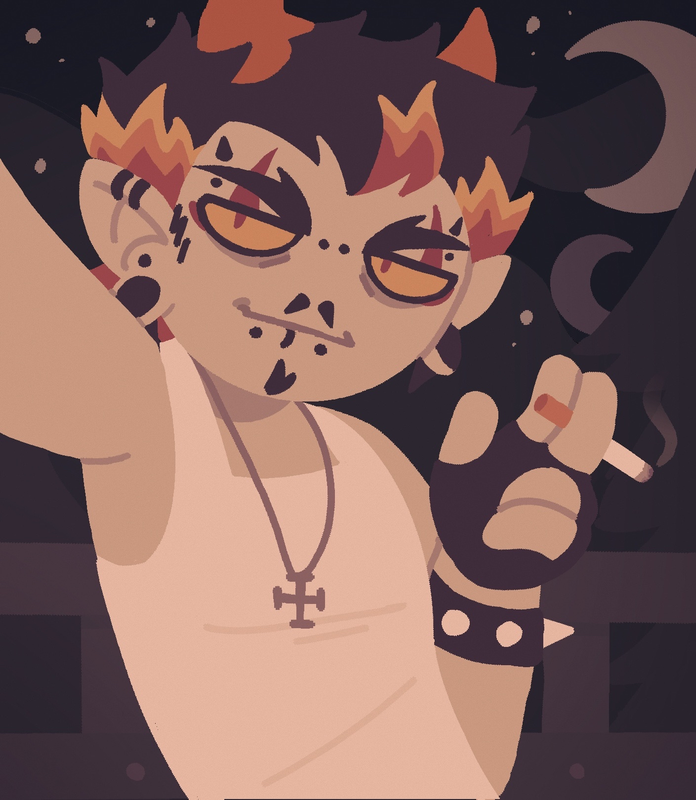 :+> [Cigarette packs take so much longer to finish without him. Not in a cute way tho I mean it in the sense that he's always taking my fuckin cigs.] >:/: #substance