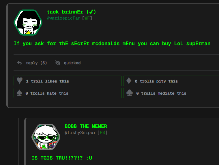 If you ask for thE sEcrEt mcdonaLds mEnu you can buy LoL supErman